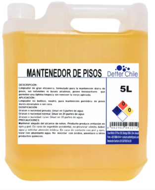 Mantenedor de Pisos DETTER es un producto formulado para la limpieza y mantención diaria de pisos, ayudando a conservar el brillo, la protección y la apariencia de las superficies tratadas. Su fórmula limpia eficazmente sin dañar ni remover la cera, prolongando la vida útil del acabado del piso.