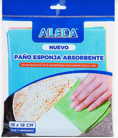 El Paño Esponja Aileda 18×18 cm es un aliado indispensable para la limpieza diaria del hogar o espacios comerciales. Fabricado con material absorbente y flexible, combina la suavidad de un paño con el poder de limpieza de una esponja, permitiendo eliminar fácilmente líquidos, grasa y suciedad. Su formato práctico y reutilizable lo convierte en una opción económica y ecológica.